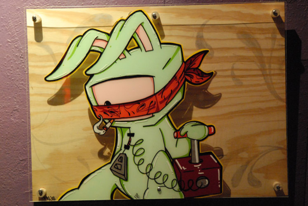 i think another cool idea is to create some characters that are simple and paint them onto glass and raise the glass and then put that over some wood so it would cast a shadow.